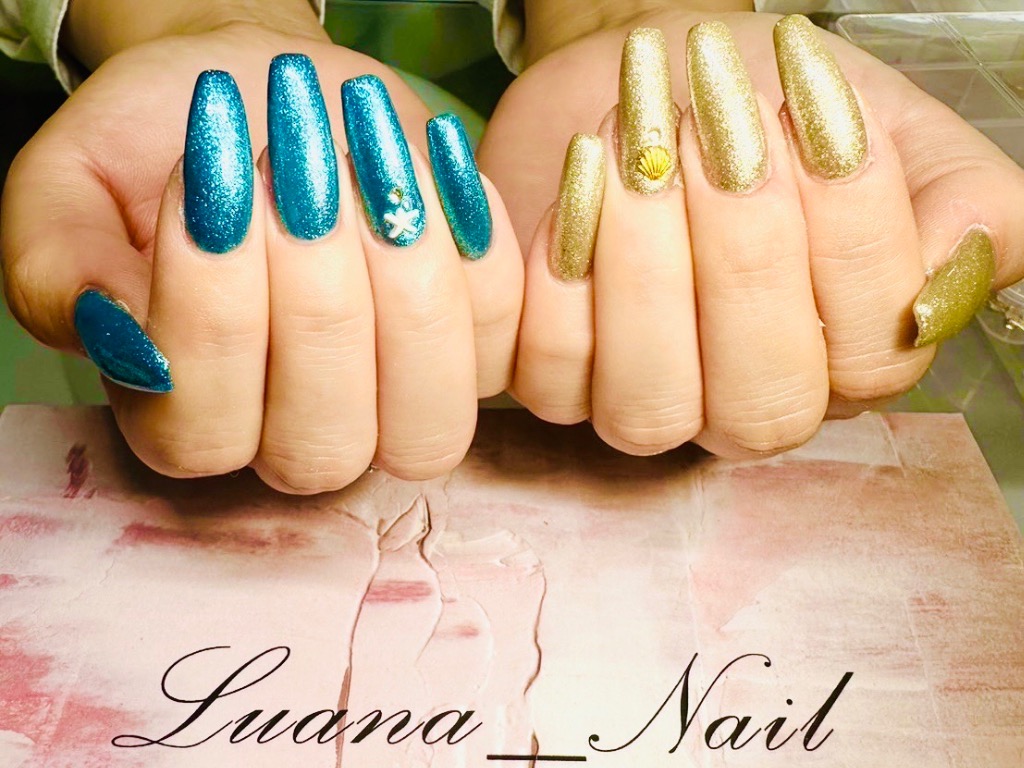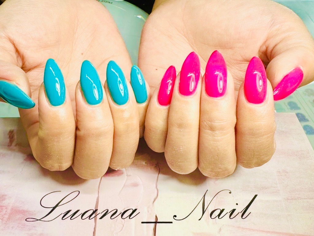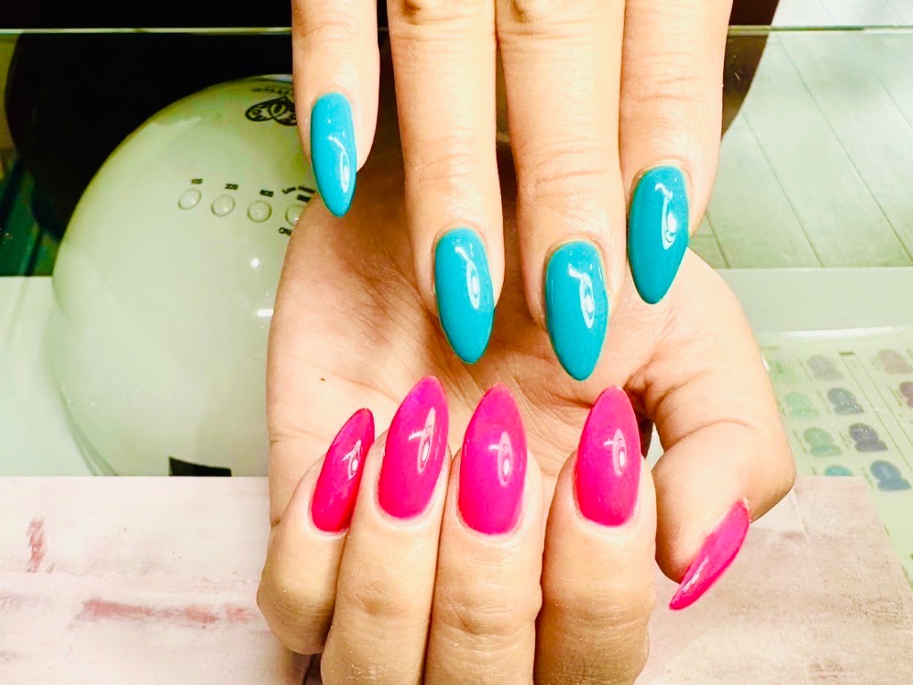 ティファニーブルーとビビットピンクが可愛いアシメネイル💅
