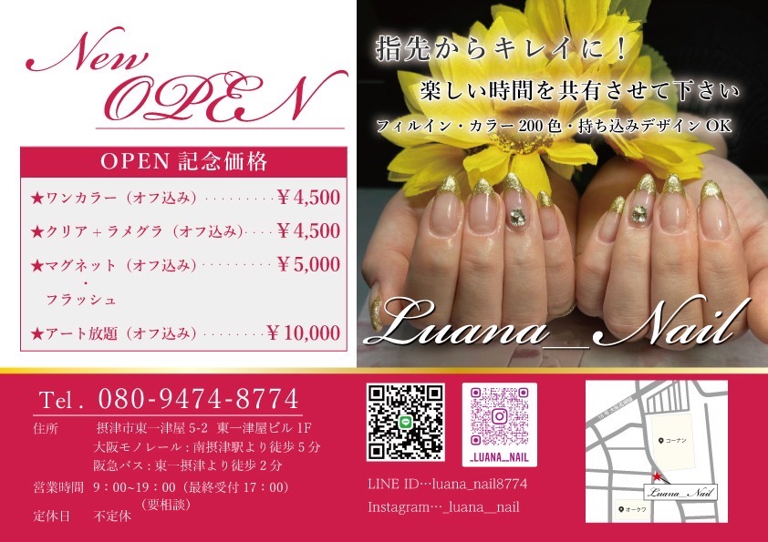 摂津市、ネイルサロン、フィルイン、アートし放題