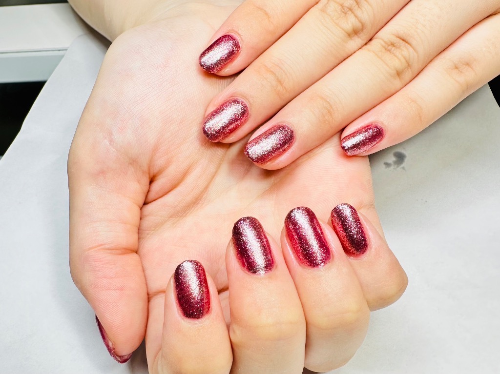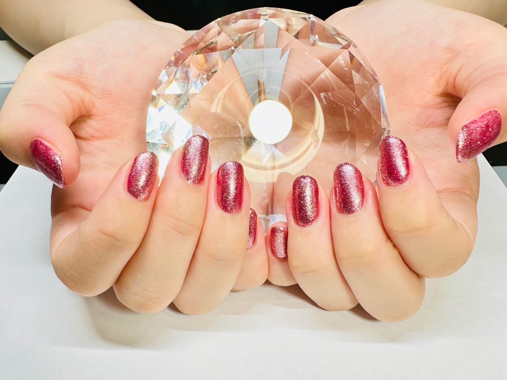 ラメ×レッド♥️ワンカラーネイル💅