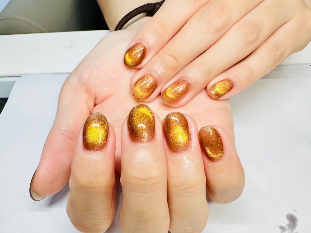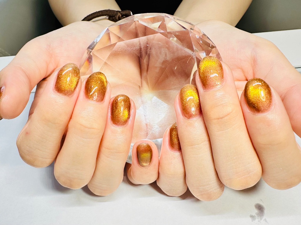 琥珀を指先に閉じ込めたような色合いが素敵なカラーのアニマルマグネットネイル💅
