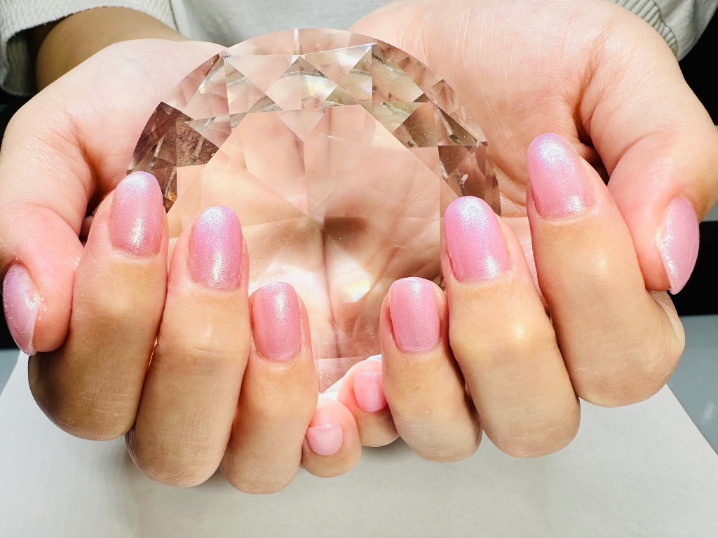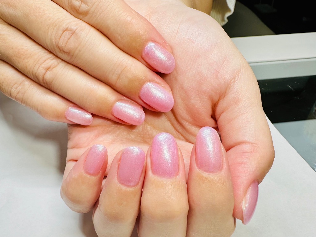 いちごミルクのような可愛らしいピンクにほんのりラメが素敵なワンカラーネイル💅