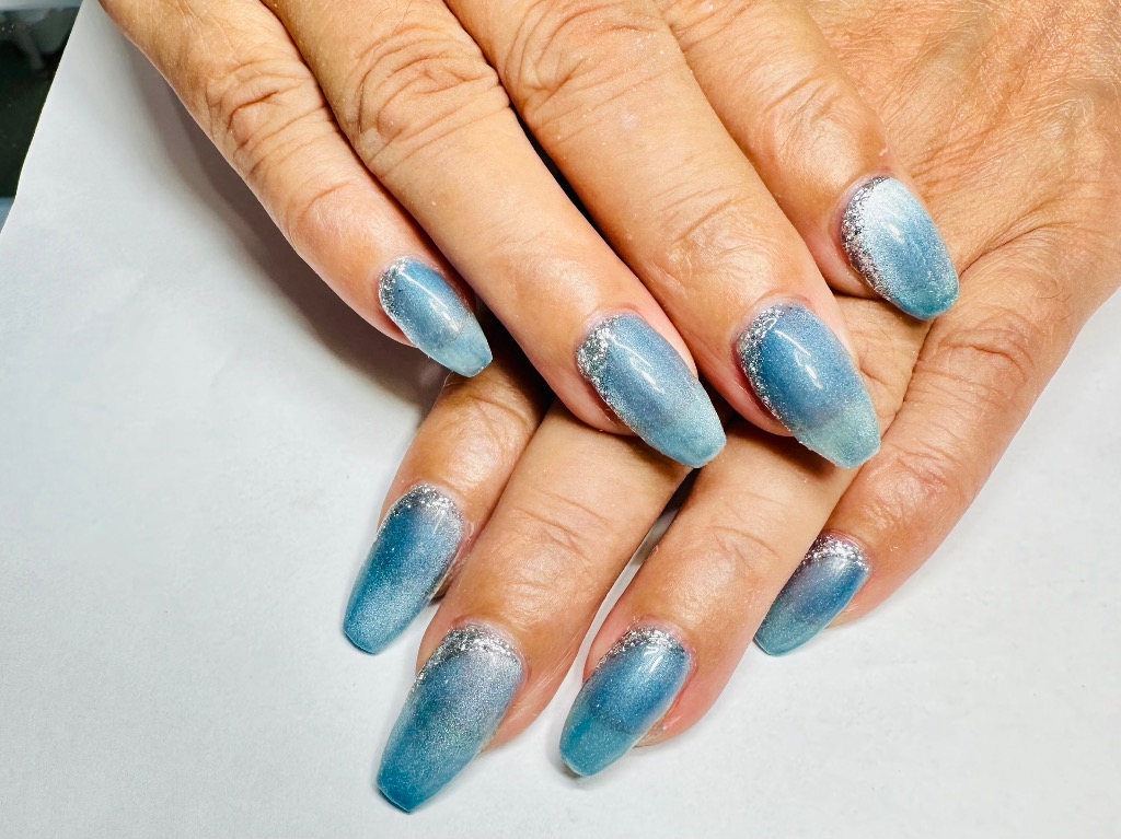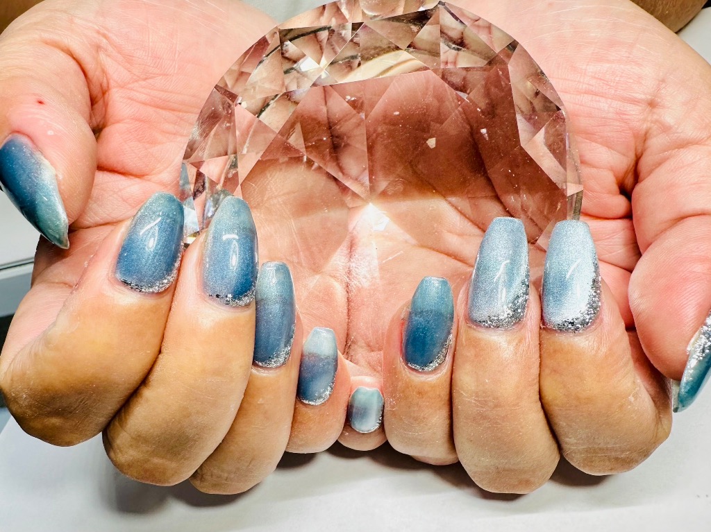水色マグネットネイルをベースに10本デザインコース💅