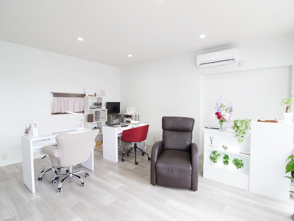 当サロンでは清潔感あふれる白を基調とした空間で、お客様に心地よい時間をご提供しています。